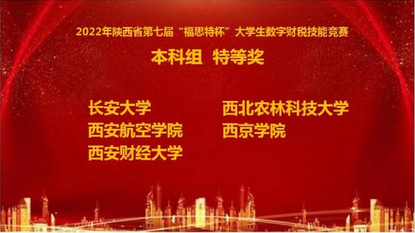 10月29日,由陕西省教育厅高等教育处主办的2022年陕西省第七届“福斯特杯”大学生财税技能竞赛隆重开幕,经过三小时的激烈比赛,由澳门pg官网徐文娟、黄毅祥两位老师指导的廖芮、王沁萱、谷雯和袁安悦四位同学组成的澳门pg官方电子平台代表队获得“特等奖”,实现了澳门pg官网参加该项赛事以来的历史性突破!