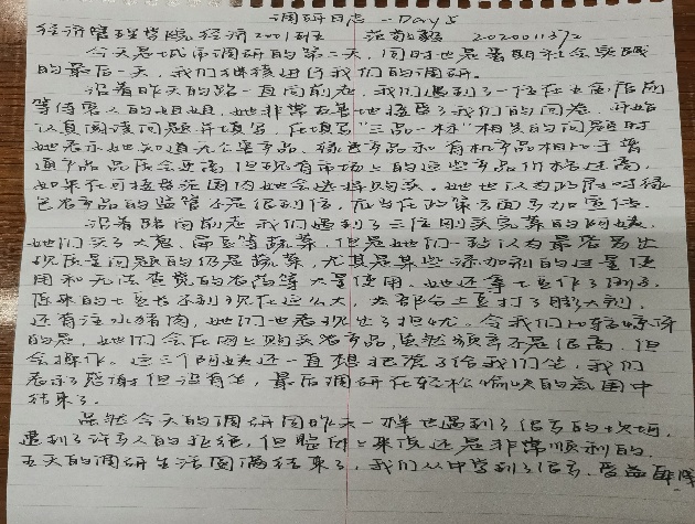 从同学们的实习日志可以看出,同学们在最初的彷徨到适应后感受到了校外实习与校园生活不一样的精彩,烈日下与城乡居民的交流访谈丰富了他们的见识。尽管有些辛苦,也遇到了一些阻力,但同学们最终都凭借着耐心和沟通技巧获取了许多样本数据,获益匪浅。