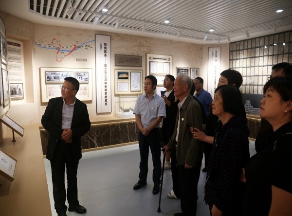 在学院领导的陪同下,习云英校友一行先后参观了北校区三号教学楼和新落成的校史馆。三号教学楼作为学校的标志性建筑,尽管岁月在其表面留下了痕迹,但其庄严与神圣依旧未改。习云英看着楼前的老树,眼中闪烁着泪光,仿佛回到了那个书声琅琅、青春洋溢的年代。她表示,这里是她成长的重要场所,每一级台阶都见证了她成长的脚步。随后,一行人步入校史馆,馆内珍藏着母校从创立至今的点点滴滴。习云英女士和魏振贤先生漫步在历史的长廊中,每一幅图片、每一件展品都让他们驻足良久,仿佛穿越了时空的隧道,重温母校那些辉煌与沧桑。