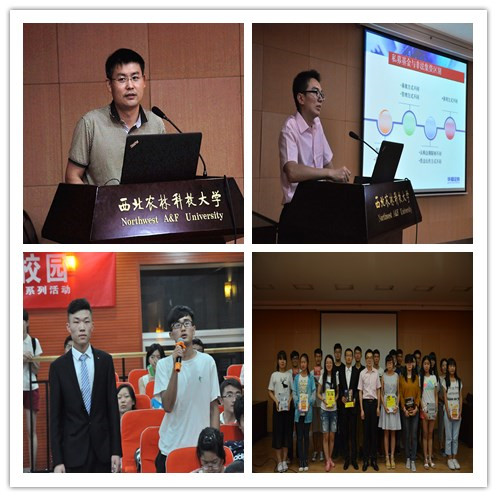 华福证券西北分公司直属营业厅总经理陈大路先生致辞,他针对前些年的金融行情给大家做了简单的分析,区分了股票与基金的特点,并对双方在不同时期的表现进行了简要的讲解。“金融行业,活着是第一位的”,澳门pg官网优秀毕业生,现任华福西北分公司投教专员潘敏以这样一句话开始了本次讲座。他结合自身成长经验,与全体听众分享了金融市场的生存法则和私募基金的相关知识。他首先帮助大家明确了什么是私募基金,并列举出近几年在互联网金融出现的多起金融理财诈骗案,提到私募基金的五个基本特点:购买门槛高、通常有业绩报酬安排、股票的投资比例较公募基金灵活、往往有流动性安排限制、信息披露较少,并对股票和基金的收益与风险进行了分析,鼓励大家学会理财,谨慎理财。报告会最后以有奖抢答的形式举行知识竞赛,现场同学热情高涨、积极参加,现场很快便将20本与金融有关的书籍赠完毕。