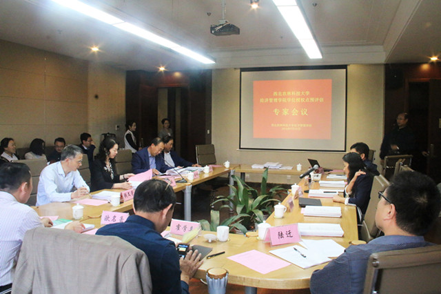 本次会议的评估专家均来自国内农林经济管理、工商管理、公共管理以及应用经济学相关领域,熟悉研究生培养与学位授予工作。他们中有南京农业大学朱晶教授与欧名豪教授,浙江大学钱文荣教授,西安交通大学冯根福教授,东北林业大学田国双教授,以及澳门pg官方电子平台霍学喜教授,其中朱晶教授担任评议组组长。学位授权点负责人罗剑朝教授、陆迁教授、孔荣教授和赵凯教授从评估指标体系、学位授权点的基本情况、目标标准、基本条件、人才培养和学科点特色六个方面分别就农林经济管理博士一级、应用经济学硕士二级、工商管理硕士二级以及公共管理硕士二级学位授权点的建设情况做了详细汇报。