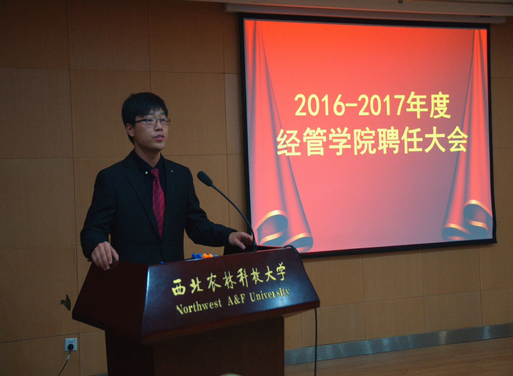 聘任大会上,上届团学干部代表张冰上台发言。她对一直以来支持学生工作、培养学生干部的老师们表达感谢,并列举过去一年里澳门pg官网团工委学生取得的成绩、分享了自己的工作经验,同时她表达了对新一届团学干部的期望,希望本学年的学生工作能够再创佳绩。随后本届团学干部代表张明瀚发言,他分享自己两年学生工作的经验与心得,并提出团学干部应该团结一致、认真负责,要有决心、信心和责任心,各部门之间要相互交流沟通、携手共进,共同做好学生工作。