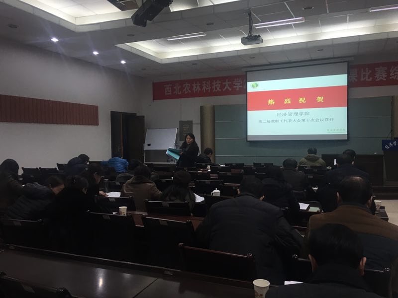 12月30日下午,经管学院在603报告厅召开第二届教代会第十次会议,教代会代表30人参加会议,党委书记姚晓霞主持会议。