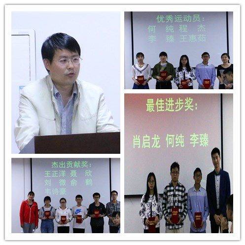 会议伊始,梁子龙宣读学院表彰决定,公布表彰名单,参会老师分别为获得最具潜力奖、最佳进步奖、最具风采奖、特殊贡献奖、杰出贡献奖、优秀运动员奖、优秀团体奖的运动员及代表颁奖。随后,优秀运动员代表赵露露、林澍青发言,他们都表示了对领导老师的关怀,学长学姐引领教导的感谢,以及对运动健儿拼搏精神的钦佩。他们都说自己在训练中不仅收获了友谊,更懂得了坚持不懈与奋斗的意义,希望能将这种力量延续到学习中去,为了更加优秀的自己而努力。