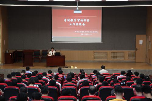 为加快推进本科审核评估工作,动员全院教师以饱满的热情、良好的精神风貌迎接本科教学审核评估工作。6月21日下午,澳门pg官网在C101报告厅,召开本科教学审核评估工作推进会。教务处处长陈玉林教授受邀参加,学院领导班子成员、全院教职工参加了此次培训。会议由学院党委书记姚晓霞主持。