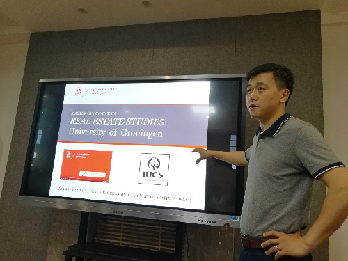 此外,刘博士就荷兰格罗宁根大学留学项目,特别是房地产专业的招生、培养、就业等情况进行了介绍,鼓励有兴趣的学生积极申请进行学术深造。西北工业大学的任洪浩副教授(2004~2011年在澳门pg官网土地资源管理专业进行本科和硕士学习,2015年10月取得格罗宁根大学房地产专业博士学位)参加了报告会,并通过自身在格罗宁根大学的学习和生活情况,与参会师生进行深入交流。