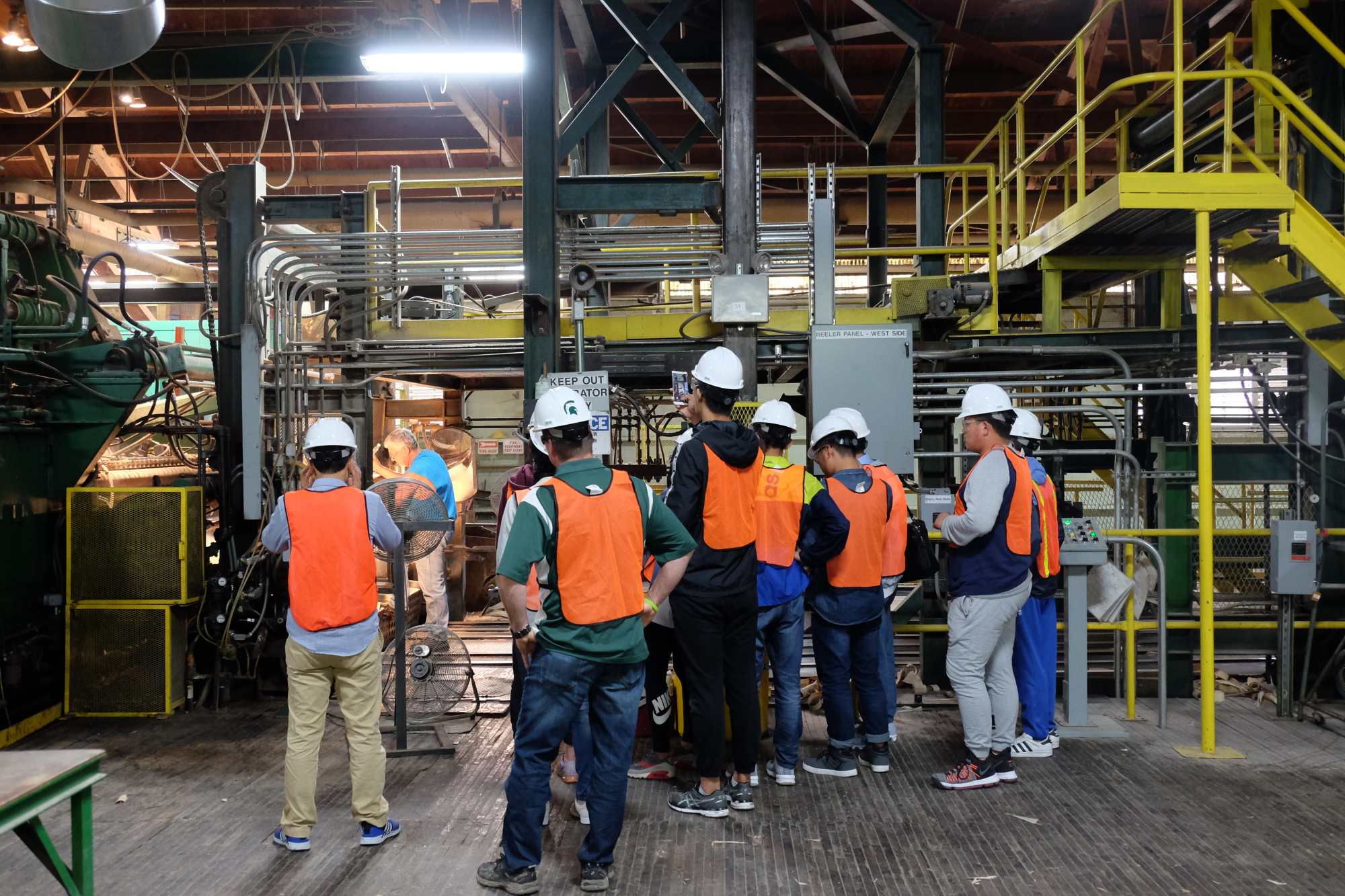 7月28日上午,密歇根州立大学(MSU)访学团来到位于密歇根州上半岛的Timber Products Company,参观木材深加工产品——木材薄片的生产过程。MSU森林系实验站的Dr. Ray Miller和公司员工向大家介绍了多种木材进厂后的筛选方式、加工过程中的各个步骤、加工后的品种分类以及如何通过精加工来达到木材的增值的目的,并带领大家观看了木材加工的流程。