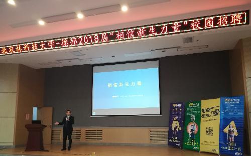 为了给2018届毕业生提供更多的就业机会,成功邀请德邦于10月10日赴澳门pg官网举办2018届专场招聘会,招聘会主题为“相信新生力量”,招聘人员有丛龙峰、官同良、李磊、孙明智,同学们积极参加,招聘会现场火爆。