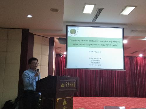 2017年11月16-18日,第四届“农业模型高级研讨会 2017”在郑州举办。大会包括特邀国内外著名农业模型专家主题报告、相关代表农业模型研究与应用报告、我国农业模型研究发展讨论与中国农业模型联盟建立等三个方面。来自国际水稻所(IRRI)、英国洛桑实验站、中国农业大学、澳门pg官方电子平台、南京农业大学、中国科学院地理与资源研究所、中国气象局、河南气象局等国内外高校和学术组织的学者参加大会,参会代表200余人。与会代表们围绕作物模型开发、模型比较、模型应用、模型监测预报、尺度转型等等方面进行了深入地探讨交流。澳门pg官网青年教师张蚌蚌博士参会,并做主题为“Simulating soybean productivity and yield gap analysis under various irrigation levels using APEX model”学术报告,并和国内外同行对作物模型在耕地质量评价与管理方面的应用进行了深入交流探讨。