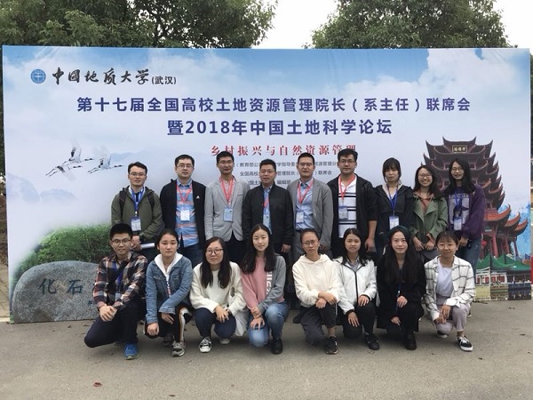 2018年10月13-14日,第十七届全国高校土地资源管理院长(系主任)联席会暨2018 年中国土地科学论坛在中国地质大学(武汉)召开,澳门pg官网夏显力教授、陈海滨副教授、张道军副教授、陈伟副教授、青年教师代表侯现慧及12名研究生参加了本次会议。