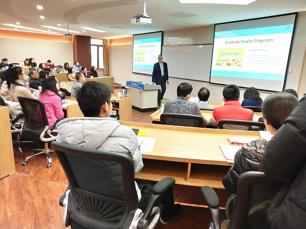 座谈会邀请来自加拿大Alberta大学的Vic Adamowicz教授,为师生们奉上了一场精彩的海外留学讲座。Vic Adamowicz教授向澳门pg官网师生详细介绍了加拿大Alberta大学的科学研究领域、ALSE暑期项目及留学费用等相关内容,并对学生海外访学及留学发展进行相关指导。会议现场,Vic Adamowicz教授围绕师生关心的留学院校环境、专业选择、学位学制等方面的疑问进行了详细解答。