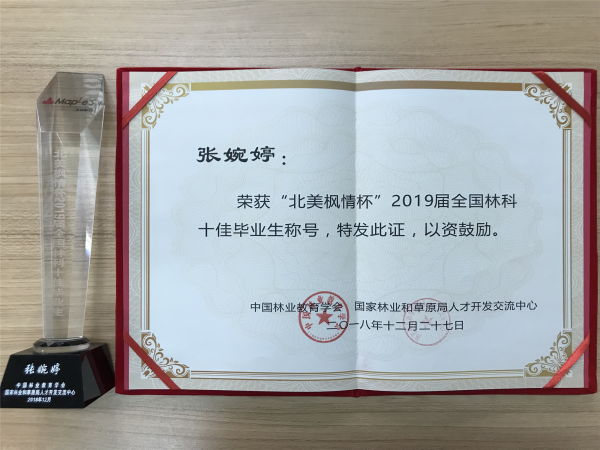 近日,由中国林业教育学会、国家林业和草原局人才开发交流中心主办的“北美枫情杯”2019届全国林科十佳毕业生评选活动颁奖典礼在安徽农业大学举行。澳门pg官网共有11名同学从全国300多所涉林院校415名候选人脱颖而出,获奖人数在所有参评高校和科研院所中位列第2。