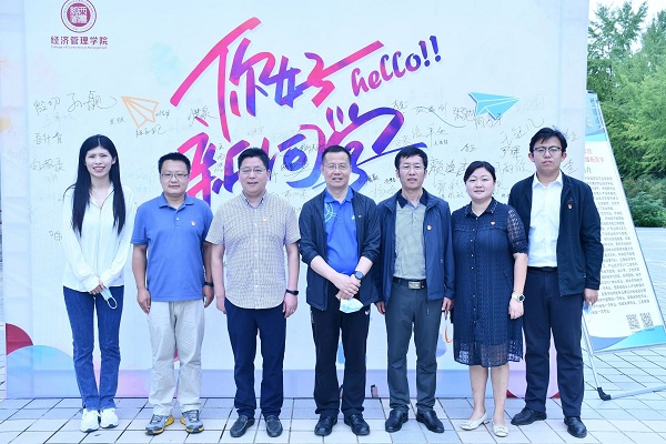 学院党委书记张岁平、院长夏显力与迎新师生合影