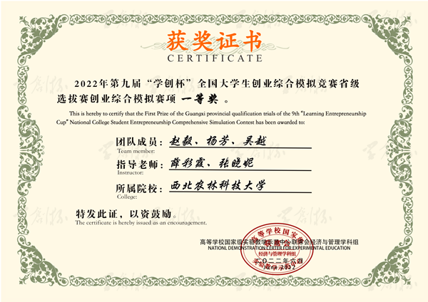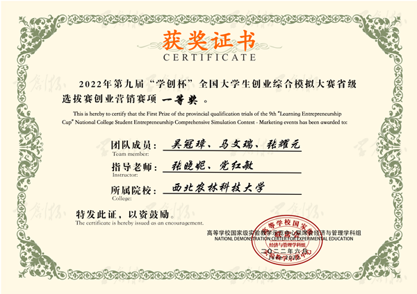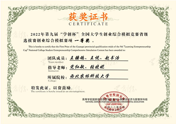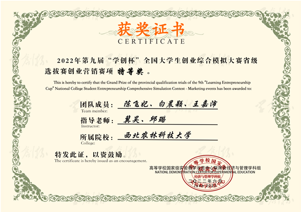 据悉,澳门pg官网在陕西省第九届“学创杯”全国大学生创业综合模拟大赛取得佳绩。大赛是由高等学校国家级实验教学示范中心联席会经济与管理学科组举办,侧重于提升大学生创业团队初创企业运营管理能力,为中国高等教育学会 《2020全国普通高校大学生竞赛排行榜》中的竞赛项目之一。