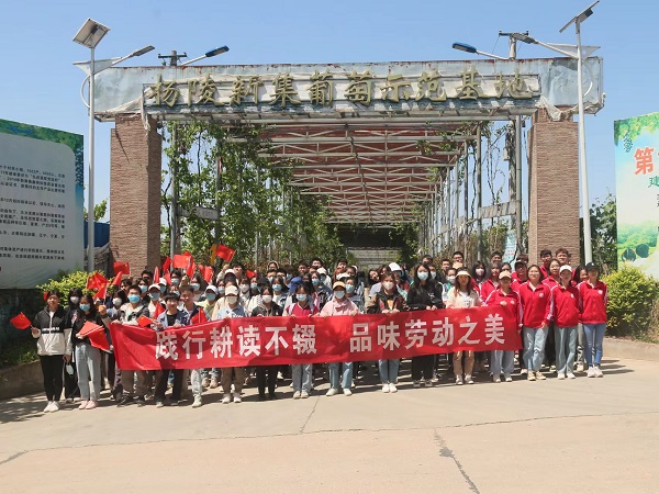 在团史演讲主题学习过程中,本院学生通过自发性的学习与短视频的制作筑牢理想信念,重温初心使命,将本次学习所强化的精神在办实事与志愿服务活动中,为服务社会、奉献社会贡献了自身的力量,充分利用网络便利,结合线上与线下的方式帮助他人、交流经验;在经管学院、语言学院、植保学院、人文学院和动医学院等五个学院联合举办的耕读教育实践活动中,青年学子前往陕西省杨凌区新集村进行葡萄园除草等劳动活动,体现出当代青年人深入乡村建设,砥砺前行为人民服务的决心和信心;最后秉持着传承五四精神理念,为引导青年增强历史责任感和时代使命感,优秀团员代表鼓励“青年全面发展,积极响应国家号召,努力为中华民族的伟大复兴梦做出贡献”,百余位团员代表们与团旗合影纪念,重温入团誓词。