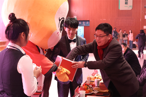 就业指导中心副主任汪勇攀为获评“优秀学生干部”和“优秀共青团干部”的学生代表颁奖