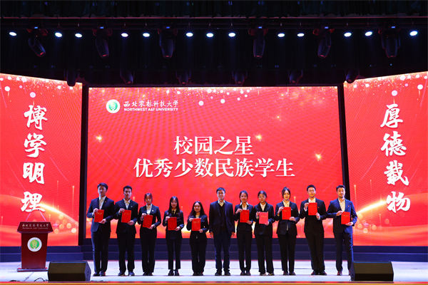 学院副院长张寒为获评“校园之星”和“优秀少数民族学生”的学生代表颁奖