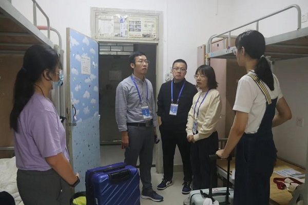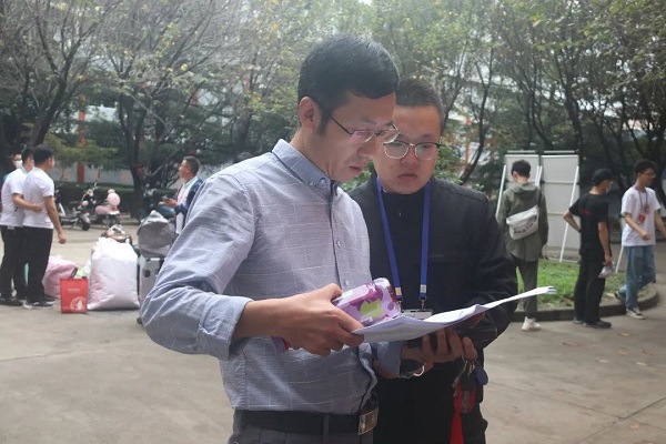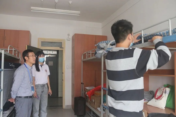 早上七点,在辅导员的指导下,团学工作人员和志愿者们分别就位。所有迎新工作者主要分为两队,一队人员在校车、摆渡车停靠点等待着萌新们,二队人员在宿舍楼下认真完成“五查一测”工作,志愿者们热情地接过行李,并对学弟学妹们表示“欢迎加入经管学院大家庭”,迎新工作有条不紊地进行着。为深入了解新生报到情况,学院党委副书记张军驰和新生辅导员走访新生宿舍,同新生们交流开学感想、解决相关难题,同学们纷纷表示学长学姐都很热情,深深地感受到了经管大家庭的温暖,相信未来的“经管时光”会是青春中美好的回忆。