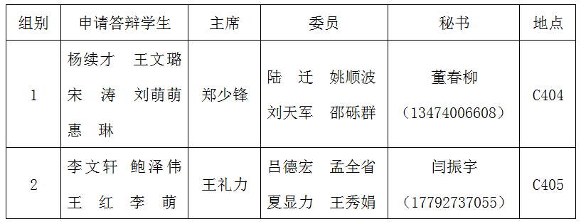 1. 以上申请答辩学生应在5月4日前,与本组答辩秘书联系沟通答辩公告发布等事宜;具体事宜详见《关于做好2018年上半年全日制工商管理硕士研究生学位论文答辩工作安排的通知》(http://cem.nwafu.edu.cn/mba/mbaggtz/380248.htm; )