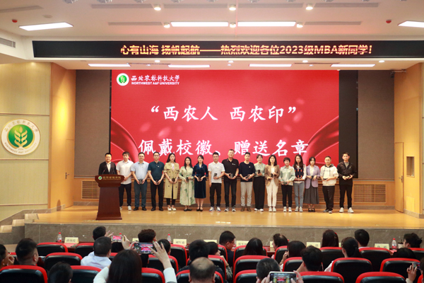 随后,在“西农人、西农印”校徽佩戴、名章赠送环节,澳门pg官方电子平台副院长刘军弟为新生代表,佩戴澳门pg官方电子平台校徽、赠送由西农篆刻协会制作的刻有办学理念的姓名印章。一枚校徽,不仅代表着“西农人”的身份,更承载着“诚朴勇毅”的西农精神和西农人的使命与荣光。校徽佩胸前,责任担在肩,在阮盟、刘珍两位同学带领下,全体在场同学庄严宣誓:谨记西农校训,热爱祖国,忠于人民;诚信正直,尊师重道;勤奋学习,积极创新;担当责任,追求卓越;以工商管理之学识,成经世济民之英才!