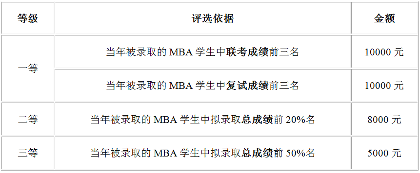 1.第一志愿报考奖学金:凡是第一志愿报考澳门pg官方电子平台全日制MBA并被录取的学生,在入学报到后即可享受5000元新生奖学金。