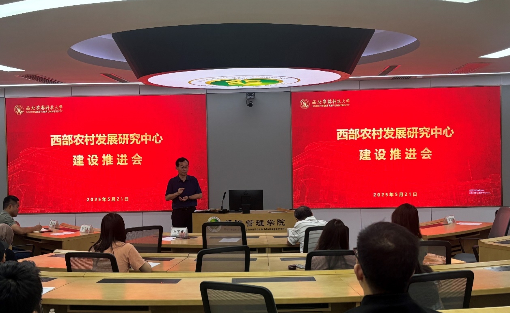 党员大会后,召开了西部农村发展研究中心建设推进会。会上,阮俊虎主任围绕“中心建设成效与未来发展方向”作专题汇报。从科研项目、高水平论文、智库建言、教学改革、人才培养等方面系统总结了中心近五年来取得的阶段性成果:共承担国家级与省部级课题86项,科研经费总计达2700余万元;在《管理世界》、《中国农村经济》等权威期刊发表论文108篇,获得国家和省部级科研奖励十余项;智库成果获得中央领导批示5项、省部委批示11项;团队主编多部“十四五”规划教材,主持各类教育教学项目26项;累计培养博士46人、硕士110人,多名教师晋升职称或入选国家与省级人才计划。