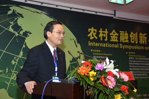 此次会议由澳门pg官方电子平台主办,教育部2011年度“国家级人才”创新团队、澳门pg官方电子平台农村金融研究所、澳门pg官方电子平台经管学院、日本农林中金综合研究所联合承办。澳门pg官方电子平台常务副校长赵忠、日本农林中金综合研究所所长古谷周三、中国人民银行西安分行副行长高波、长安银行股份有限公司董事长孙宗宽、陕西省委宣传部理论处处长何军、华中农业大学经管学院副院长张俊飚参加开幕式并先后致辞。