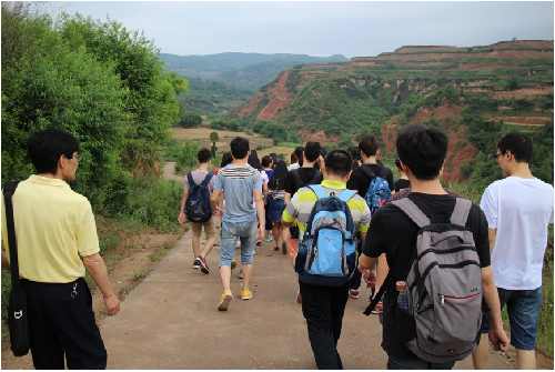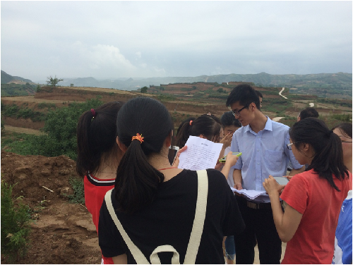 经过8天连续紧张地室内软件操作实习后,7月11日,两个班全体53名同学及5名带队老师乘车来到宝鸡市陇县河北镇兰家堡村调研荒山土地开发项目。由于项目地处深山,校车无法通行,老师和同学们冒着酷暑来回步行了近14公里进入现场考察。该项目为陕西省重大土地整治项目五大工程之一,建设规模1173亩,新增耕地面积1104亩,由陕西省土地工程建设集团有限公司负责建设实施。