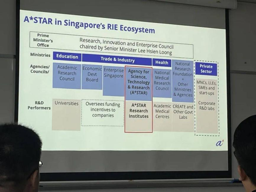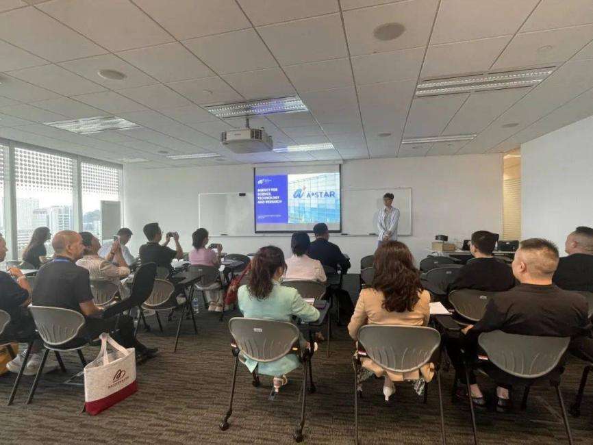 研学团深入亚洲顶尖科研机构—新加坡科技研究局(Agency for Science, Technology and Research,简称A*STAR),聚焦人工智能与先进制造的产业转化进行主题交流。A*STAR是由新加坡政府设立的国立科研核心机构,直属于新加坡贸工部(Ministry of Trade & Industry),其前身为1991年成立的新加坡科技局(NSTB),于2002年正式更名重组。A*STAR以推动经济导向的科学研究与技术转化为核心使命,通过整合学术界与产业界资源,加速新加坡向知识型经济体转型,持续增强国家竞争力和创新能力。A*STAR何大江和高博两位博士,分别为师生们解析了AI技术在低空经济、光线传感器在生物医药等领域的应用场景,与师生们进行了深入的交流问答。A*STAR先进的科研理念和创新成果让师生们大开眼界。