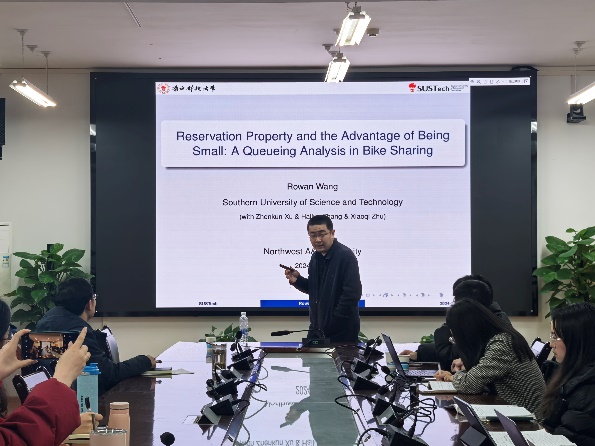 2024年12月19日下午,澳门pg官方电子平台澳门pg官方电子平台西部农村发展研究中心在C304会议室成功举办了“预约特性与小规模优势:共享单车的排队分析”主题的学术研讨会。本次会议主持人为孙自来老师,在对王宇教授简单介绍后,本次研讨会正式开始。