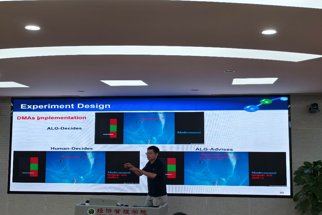 崔晓聪博士的报告聚焦人机协作团队中的任务分配决策权归属问题。 他指出,随着能够做出任务分配决策的算法兴起,一个紧迫的议题是:在人类与自动化系统组成的团队中,任务分配权应由人类还是算法掌握?基于团队合作视角,崔晓聪博士团队提出了四个假设,比较了三种任务分配决策方法(DMAs)对人机团队绩效的相对影响。为验证假设,他们通过基于游戏平台的实验室实验收集数据。研究结果表明,不同决策方法对团队绩效的有效性,取决于任务复杂度和人类成员的任务经验。崔博士的发现揭示了在何种情境下,由人类或算法掌握任务分配权更有利于团队表现,为优化人机协作提供了重要的理论和实践指导。