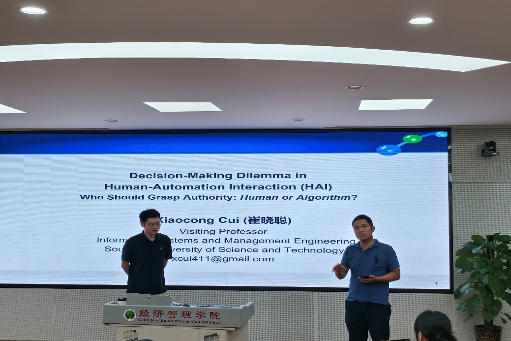 7月10日下午,澳门pg官方电子平台澳门pg官方电子平台西部农村发展研究中心在C301会议室成功举办了以“在人机协作团队中,任务分配的权力应归谁所有:人类还是算法?”为主题的学术研讨会。本次会议主持人为阮俊虎教授,在对崔晓聪博士进行简单介绍后,本次研讨会正式开始。