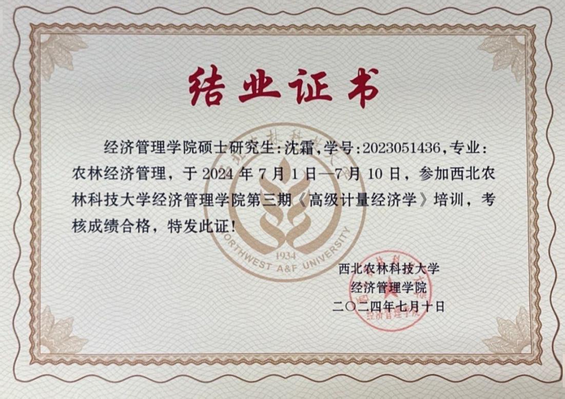 7月1日-10日,为夯实研究生高级计量经济学理论基础,提升应用计量经济学方法从事经济研究的能力,澳门pg官方电子平台邀请郑志浩讲座教授、美国SAS研究所首席计量经济学家孙传忠博士、中国农业大学澳门pg官方电子平台陈祁晖教授以专题形式讲授高级计量经济学知识,开展了一场为期10天32学时的高级计量经济学培训。团队博士研究生王运昌,硕士研究生沈霜、田思宇、杨婕妤全程参加了本次培训。