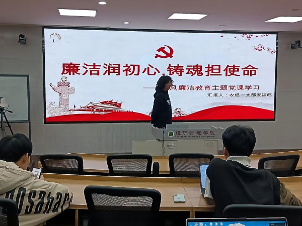 为深入学习贯彻习近平新时代中国特色社会主义思想主题教育,促进思想政治工作提质升级,深入推进校园廉洁文建设,提高党员文素养,增强党员同志的廉洁自律意识,12月14日下午,农林经济管理学硕第一党支部于经管学院C301会议室“廉洁润初心,铸魂担使命”主题党日活动。会议由梁旗同志主持,支部全体成员参加。