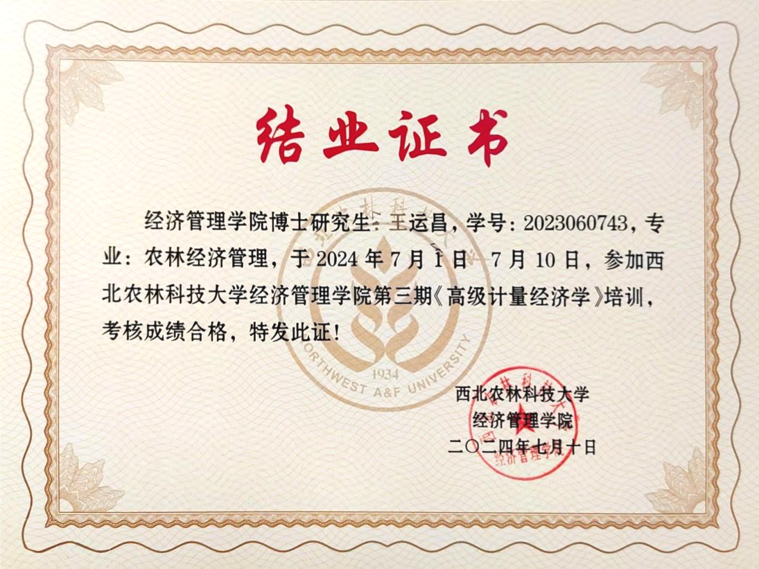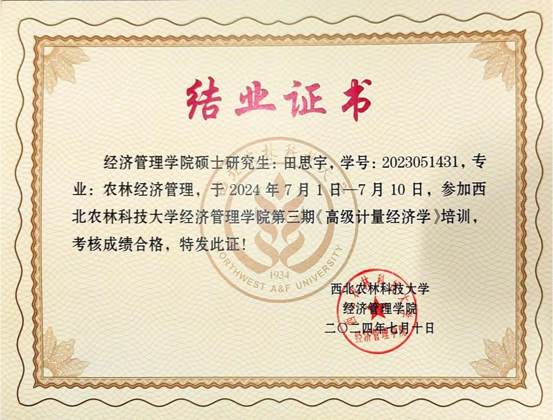 7月1日-10日,为夯实研究生高级计量经济学理论基础,提升应用计量经济学方法从事经济研究的能力,澳门pg官方电子平台邀请郑志浩讲座教授、美国SAS研究所首席计量经济学家孙传忠博士、中国农业大学澳门pg官方电子平台陈祁晖教授以专题形式讲授高级计量经济学知识,开展了一场为期10天32学时的高级计量经济学培训。团队博士研究生王运昌,硕士研究生沈霜、田思宇、杨婕妤全程参加了本次培训。
