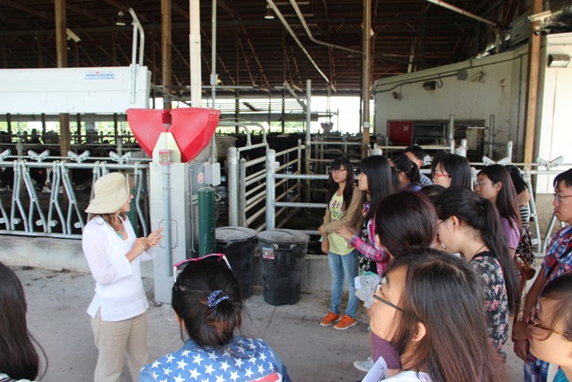 27日下午,访学团来到了MSU现代化奶牛养殖场进行参观。从管理员耐心的讲解中,同学们了解了奶牛场生产运作过程。其中,全自动化挤奶过程的参观给同学们留下了深刻的印象,也真正认识到了高科技对食品安全的重要影响。随后,访学团成员还参观了密歇根州立大学长期生态系统研究试验站,听取了试验站负责人对不同种植结构及生产模式下生态试验效果的讲解。