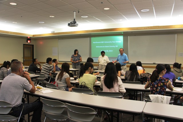 28日下午,访学团成员参观了密歇根州立大学位于Eaton County的试验推广站,Dr.George Silva系统介绍了该试验站的发展历史、组织构架及其功能,尤其是在农业生产与经营、资源与环境保护、儿童及年轻人健康成长、营养与健康等方面发挥的重要作用。随后,访问团成员还参观了以3S技术为主要支撑的大规模现代化家庭农场。最后访学团成员还顺便参观了Holt High School,大家无不对其优越的教学设施与环境感到惊叹。