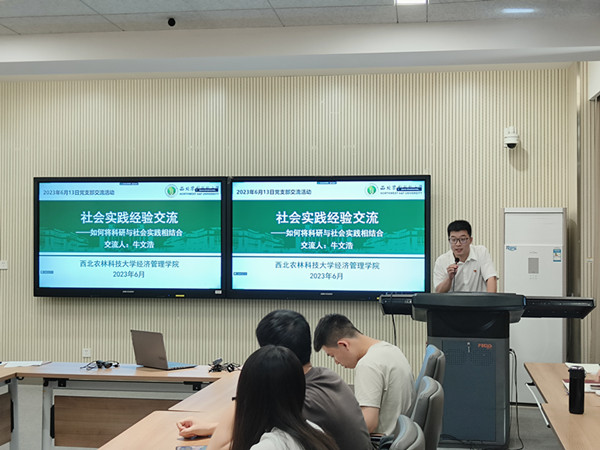 代表分享,党员教育更有“深度”。会议第二项,两院分别推选出在乡村振兴主题调研、学术研究等方面有突出表现的优秀党员同志进行事迹分享与经验交流。其中,徐思钰同志分享了调研的前期准备、调研方法和后期数据统计;沈金龙同志对论文写作与发表进行了经验分享,包括论文写作中的选期刊、定框架、填内容以及论文投稿注意事项等内容,并对低年级同学给出了切实有效的学习建议;张凯旋同志从自身的调研经历、技巧和心得方面展开分享,指出要注重细节,对于异常值要格外关注。牛文浩同志以“如何将科研与社会实践相结合”问题为导向,建议大家分三阶段走,首先要认识农村、产生兴趣,其次用调研现象和数据支撑自己的研究,最后从调研中发现新问题和新方向,鼓励大家围绕多角度开展学术研究,为国家的三农事业贡献自己的力量。