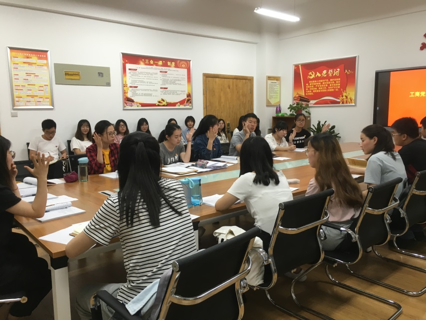2018年6月5日晚7时,工商党支部于经管学院C205会议室召开预备党员转正大会,支部副书记侯丹婷主持会议,全体支部成员参会。