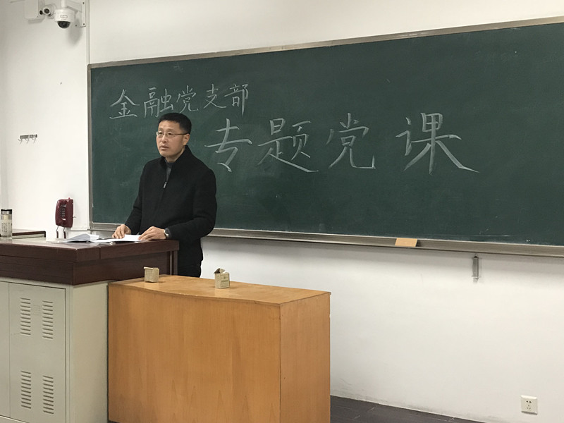 11月28日,金融党支部在S1209开展以“改革开放四十载 凝心聚力再出发”为主题的专题党课。支部全体党员、预备党员、积极分子参加党课。本次课程由学院党委委员吕德宏主讲,支部书记梁润雅同志主持。