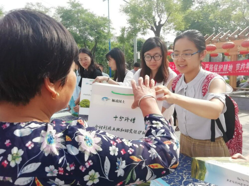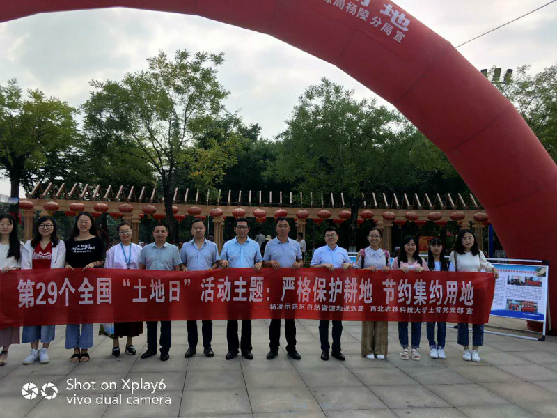 为增进公众对土地资源国情国策的了解,培育公民节约优先、保护优先的绿色发展意识,在自然资源部办公厅印发《关于开展第29个全国“土地日”宣传活动的通知》的指导下,2019年6月25日,即第29个全国“土地日”之际,澳门pg官方电子平台土管党支部联合杨凌示范区自然资源和规划局在后稷公园开展了“严格保护耕地,节约集约用地”主题活动。支部书记张蚌蚌和支部全体党员、杨凌示范区自然资源和规划局相关领导和人员等参与了此次活动。
