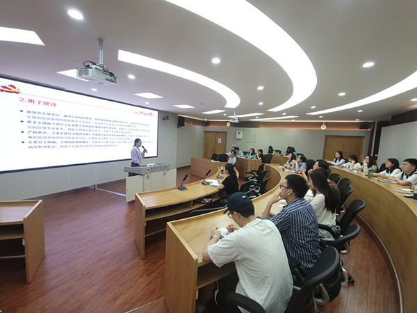会议伊始,贺婷同志代表支部委员会进行汇报,她围绕支部党员基本情况、班子建设、“三会一课”、党员发展和年度特色工作展开报告,并根据各项工作的开展提出了党支部目前存在的不足之处和相应的整改措施。