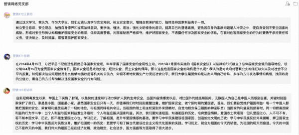 为积极响应2020年全民国家安全教育日普法宣传活动,进一步增强大学生“国家利益高于一切,国家安全人人有责”的安全意识,营造国家安全宣传教育的浓厚氛围,推动国家安全教育工作深入开展,4月10日下午,营销网络党支部以线上会议的形式一起学习《牢固树立总体国家安全观在新时代国家安全工作中的指导地位》。支部书记王欣歌主持会议,院党委副书记张军驰出席会议,营销党支部全体同志参会。